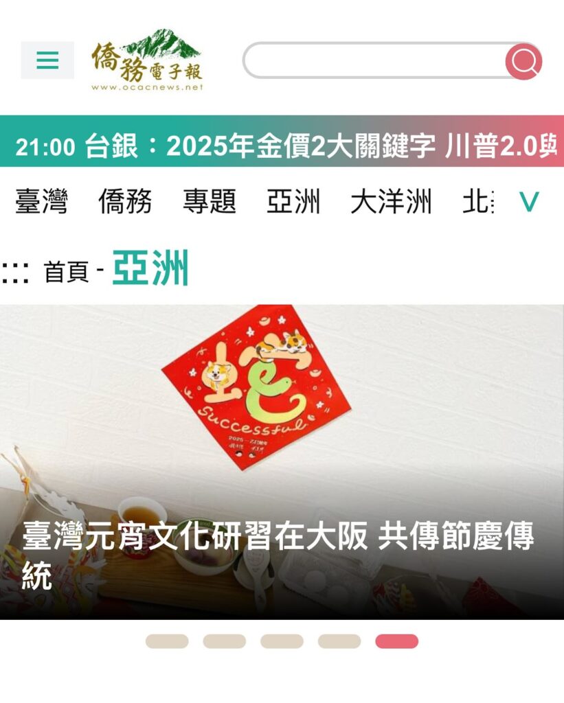 なんと中華民国僑務委員会の公式電子報に掲載されました!