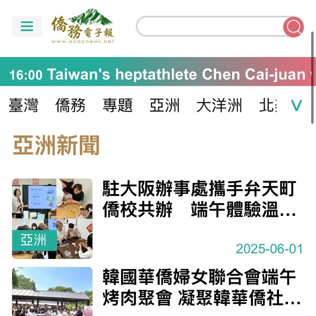 今回の記事にしてくださった僑務委員会に心から感謝です。