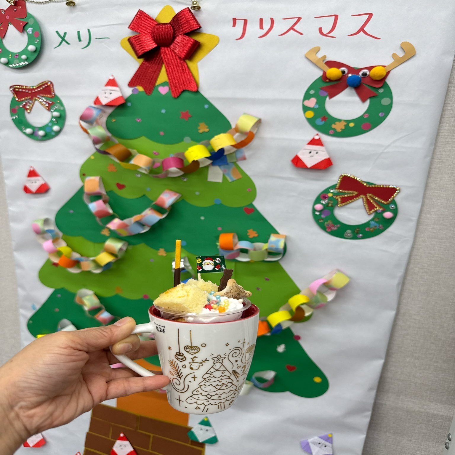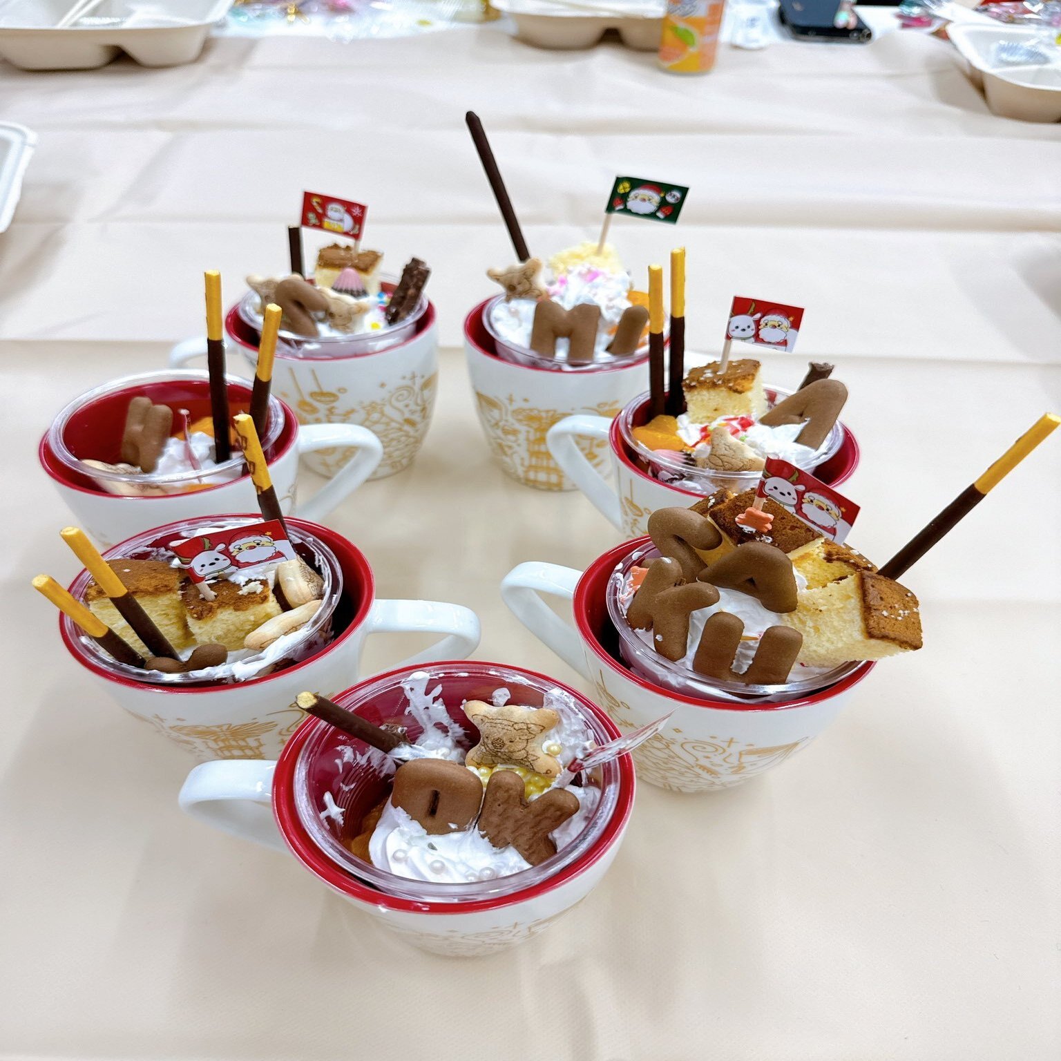この日は、子どもたちと一緒に作るのではなく、前に立ち、教える立場としてクリスマスのパフェ作りを行いました。